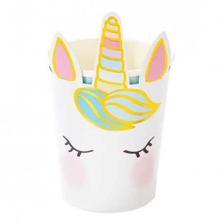 Questi bicchieri, stupendi per le feste a tema Unicorno, sono realizzati in carta e hanno la forma del viso di un unicorno con dettagli in oro foil. Abbinali agli altri articoli del coordinato Unicorn Face.